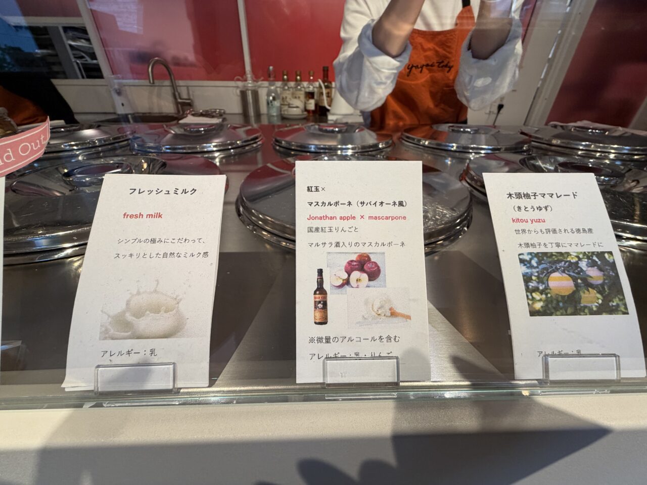 ジェラートは、オリジナリティ溢れるフレーバーがたくさんありました。気になったものは全部試食が可能でした。
