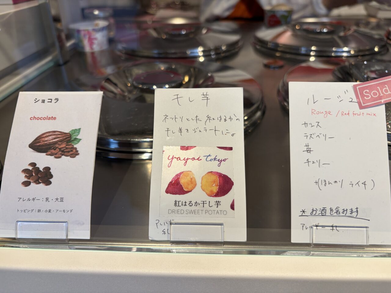 yayoi tokyo のホームページによると、ジェラートは全て卵不使用、フルーツフレーバーは牛乳を使用していないとのこと。一般的なジェラートやアイスクリームに比べ砂糖の使用量が控えめで、ヘルシーですっきりとした味わいのジェラートは、お子様からご年配の方まで世代を超えて選ばれているようです。